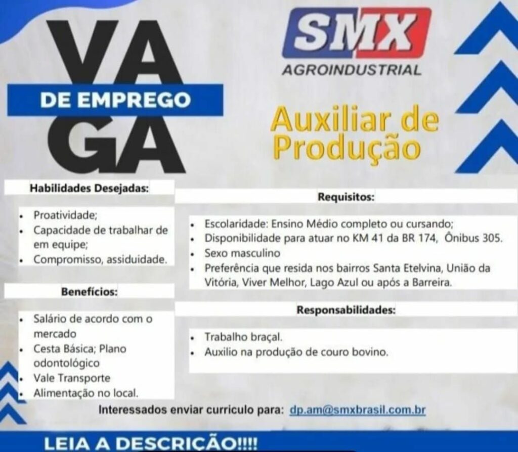 • Auxiliar de Produção e Jovem Aprendiz para Trabalhar na Honda da Amazônia