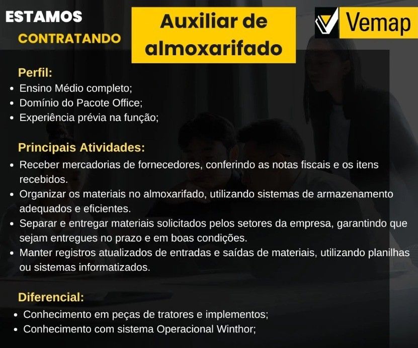 Empresa está selecionando Auxiliar de almoxarifado; Envie seu currículo!