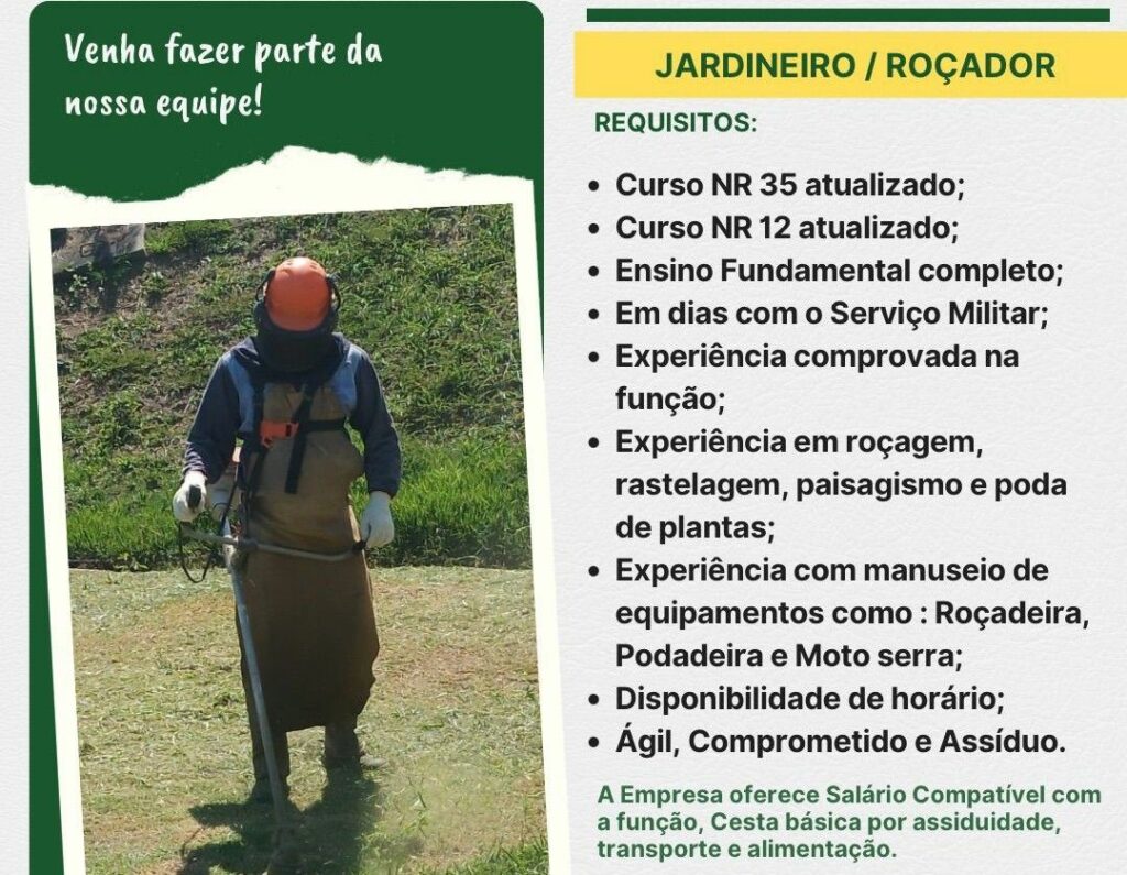 Rh está selecionando Jardineiro roçador; Envie seu currículo!