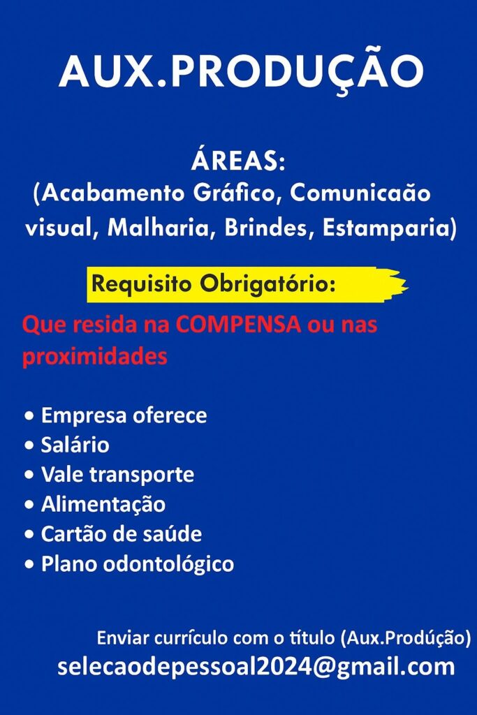 Empresa está selecionando Auxiliar de produção; Envie seu currículo!