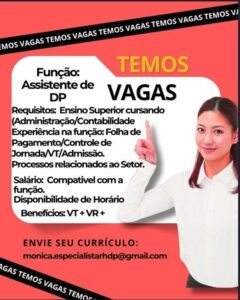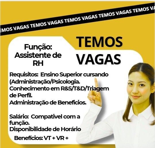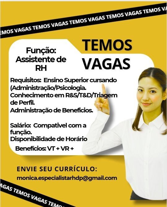 Seleção para seguintes vagas Assistente de rh, Assistente de dp; Envie seu currículo!