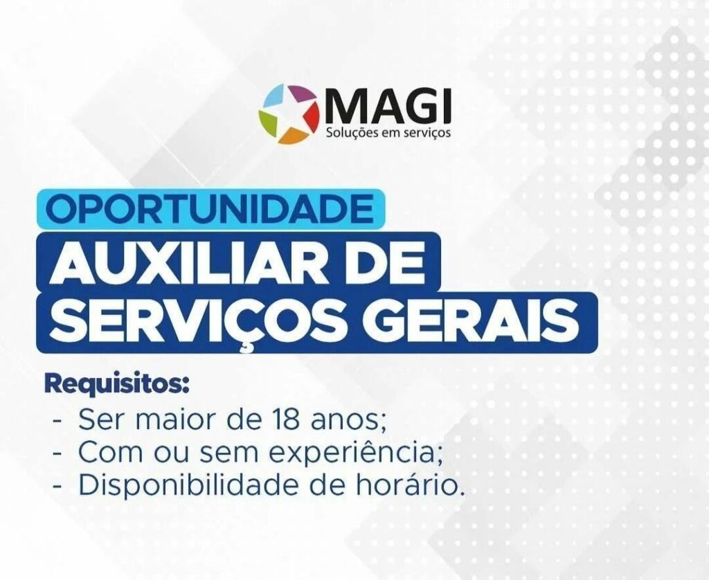 Rh está selecionando Auxiliar de serviços gerais; Envie seu currículo!
