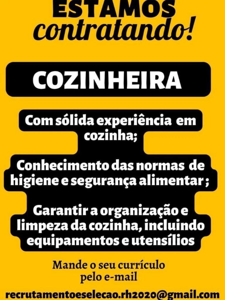 Empresa está selecionando Cozinheira; Envie seu currículo!