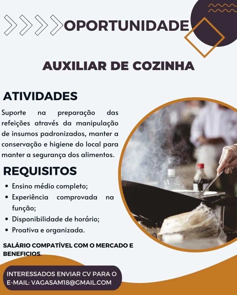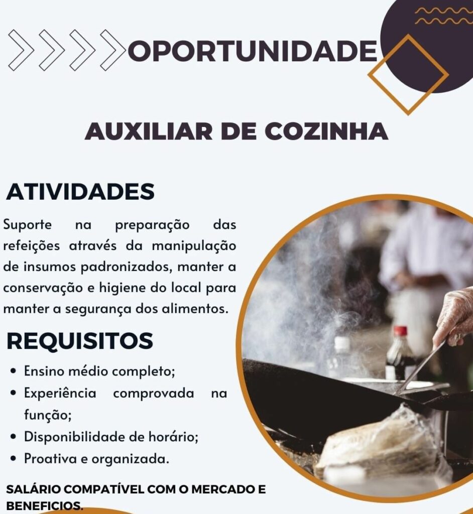 Empresa está selecionando Auxiliar de cozinha; Envie seu currículo!