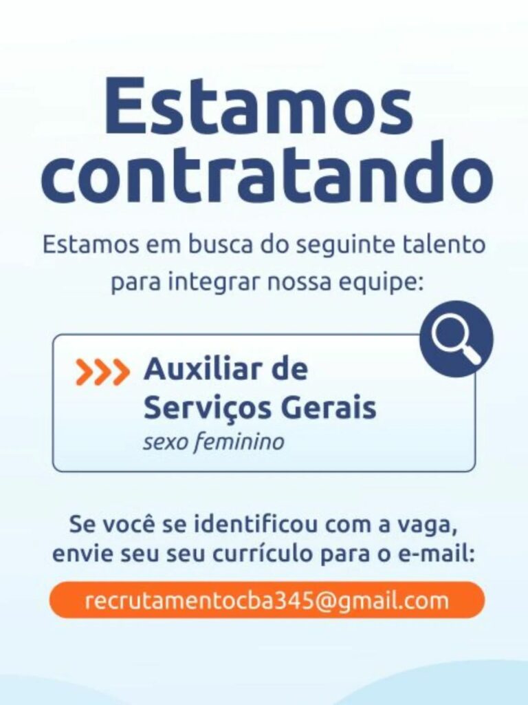 Empresa está selecionando Auxiliar de serviços gerais; Envie seu currículo!