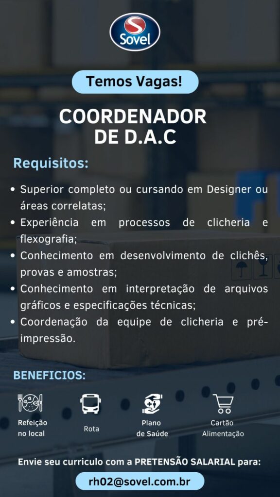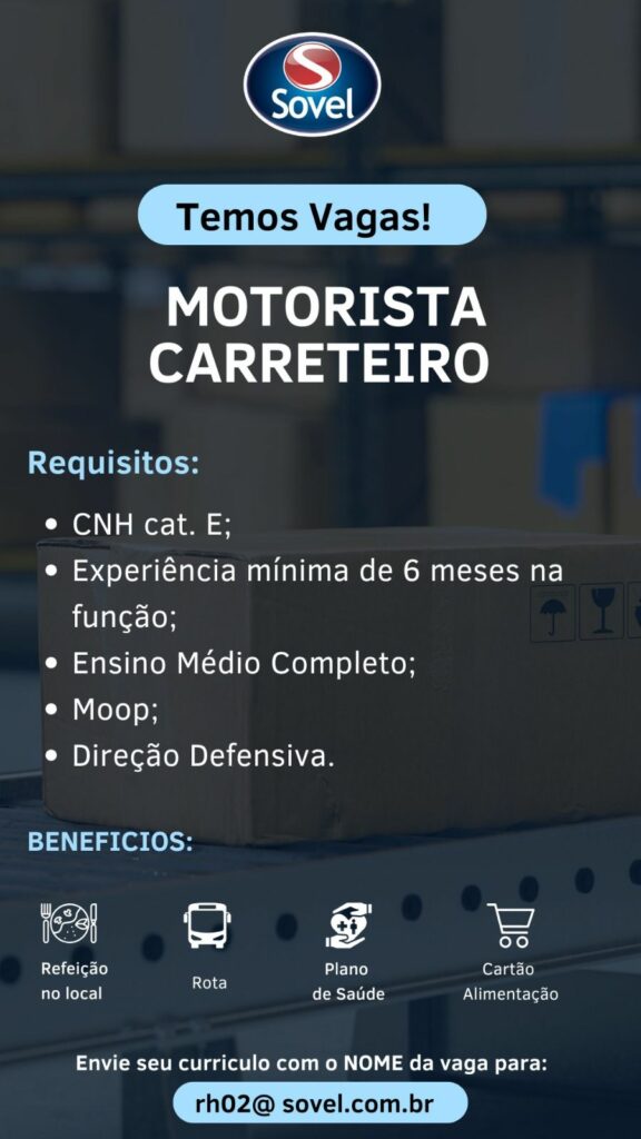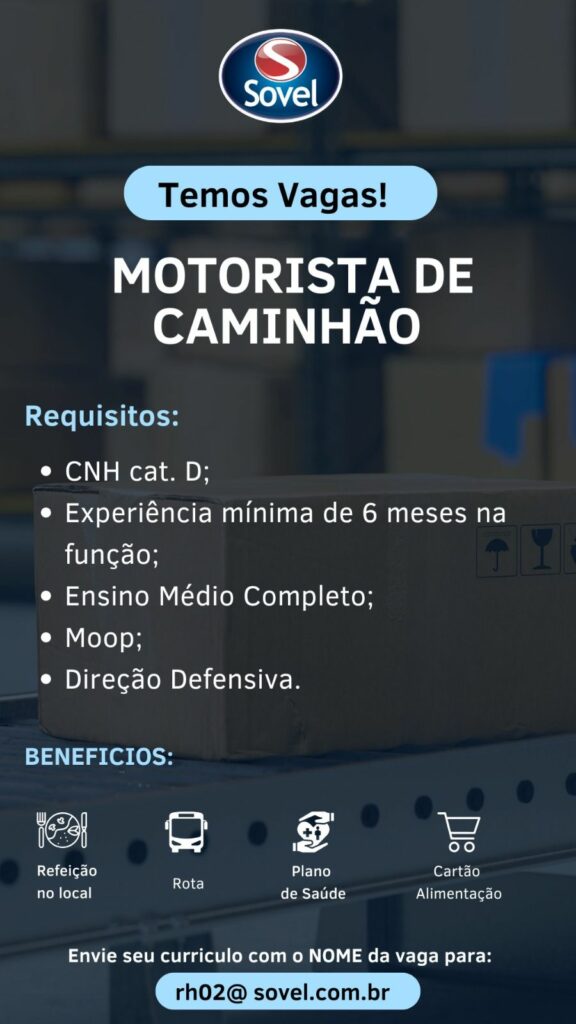Confira as 05 oportunidades de emprego oferecido pela empresa Sovel