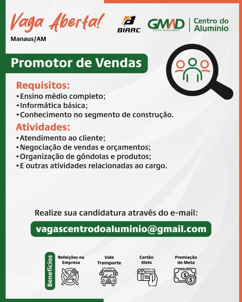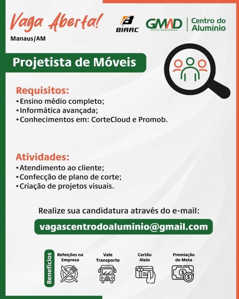 Empresa Centro do alumínio seleciona Promotor de vendas, Projetista de móveis, Ajudante de Motorista, Expedidor de mercadorias; Envie seu currículo!