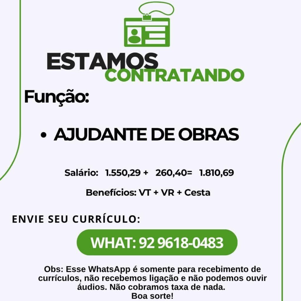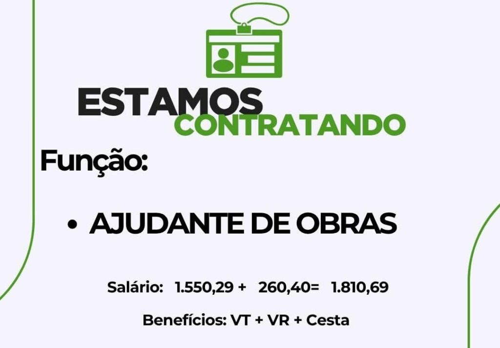 Empresa está selecionando Eletricista BT, Artífice, Pintor, Bombeiro hidráulico, Ajudante de pintura, Ajudante de obras, Ajudante de solda, Ajudante de elétrica; Envie seu currículo!