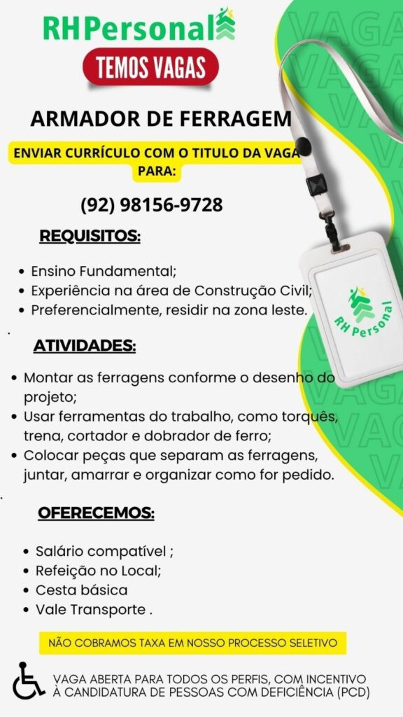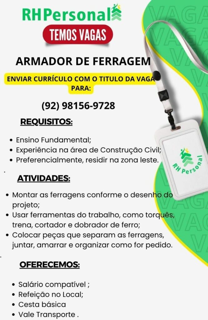 Rh está selecionando Armador de ferragem; Envie seu currículo!