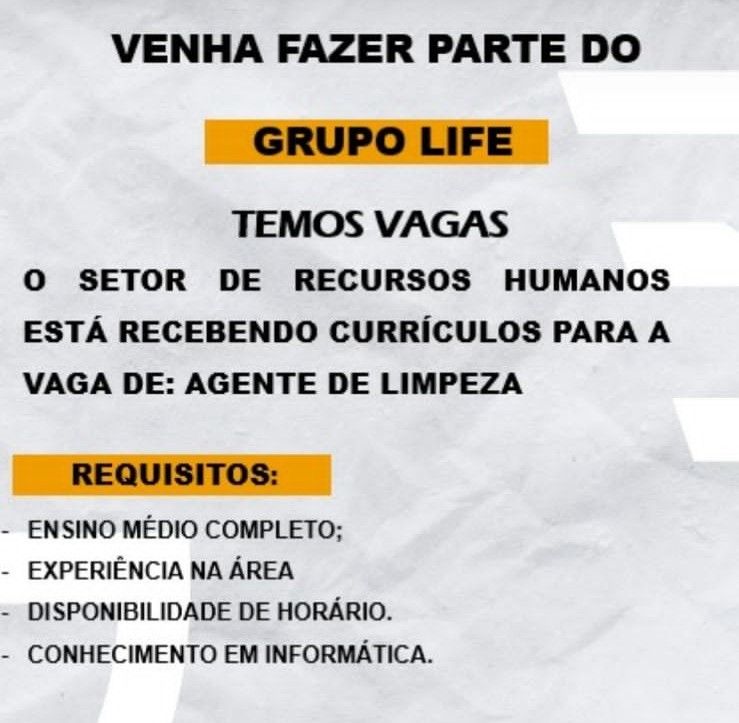 O processo seletivo para esta(s) vaga(s) não cobra absolutamente nada pela sua candidatura. Portanto, jamais aceite qualquer tipo de cobrança para cadastrar seu currículo.