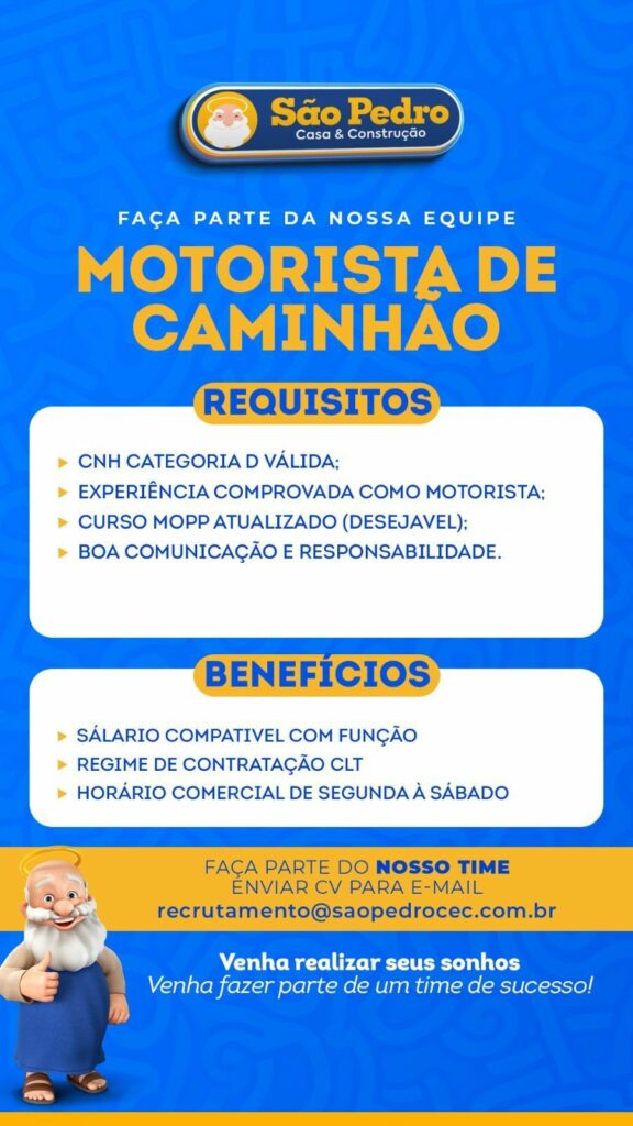 Confira as oportunidades de emprego oferecido pelo grupo São Pedro; Envie seu currículo!