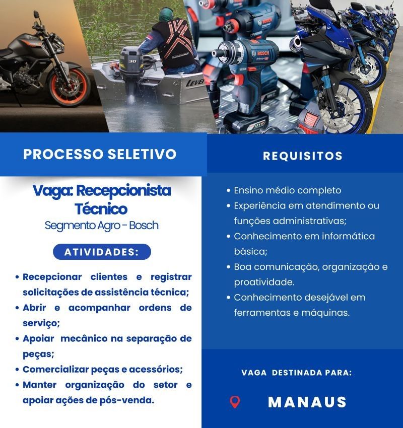 Norte Tech deseja contratar Agente comercial Motociclista; Envie seu currículo!