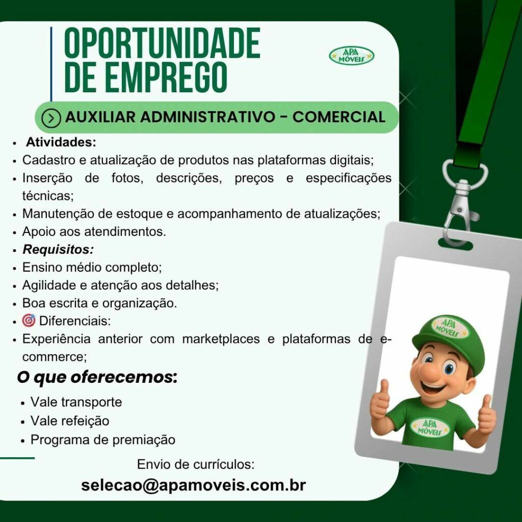 Apa Móveis está selecionando Auxiliar administrativo comercial; Envie seu currículo!