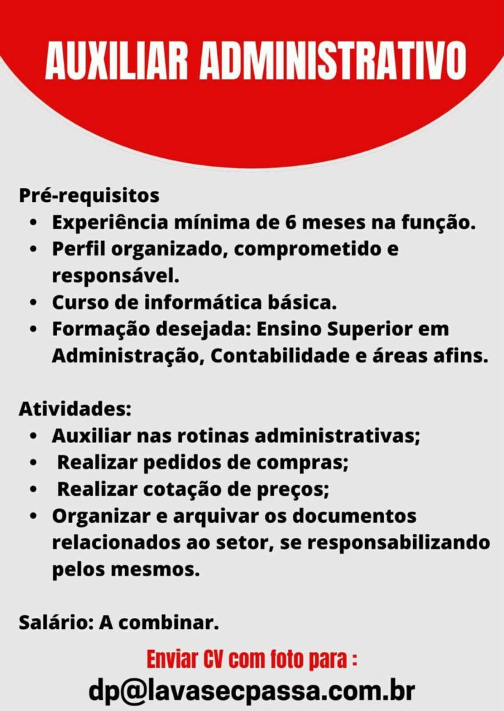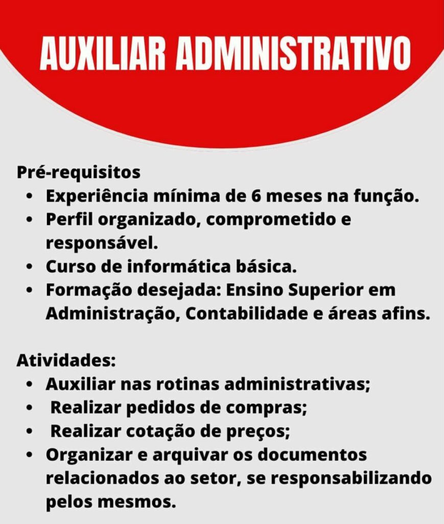 Empresa está selecionando Auxiliar Auxiliar administrativo; Envie seu currículo!