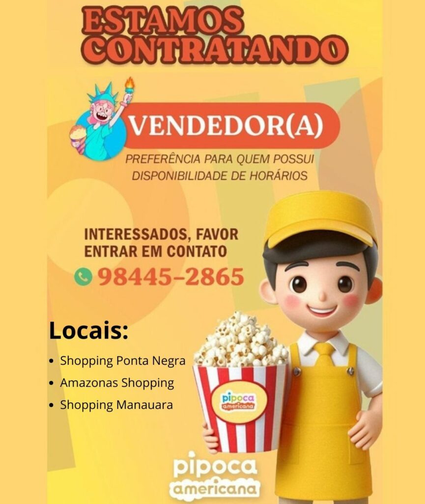 Pipoca Americana está selecionando Vendedor (a); Envie seu currículo!