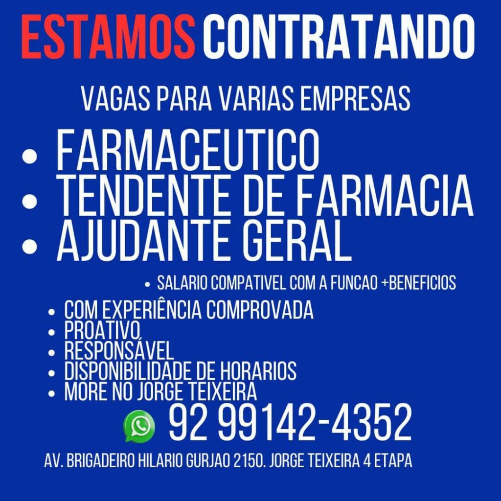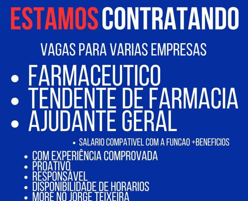 Empresa está selecionando Farmacêutico, Atendente de Farmácia, Ajudante geral; Envie seu currículo!