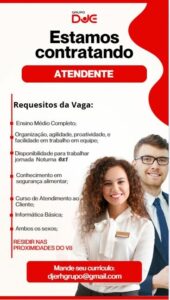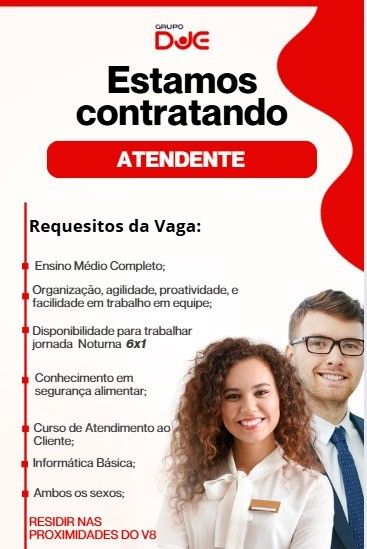 O processo seletivo para esta(s) vaga(s) não cobra absolutamente nada pela sua candidatura. Portanto, jamais aceite qualquer tipo de cobrança para cadastrar seu currículo.