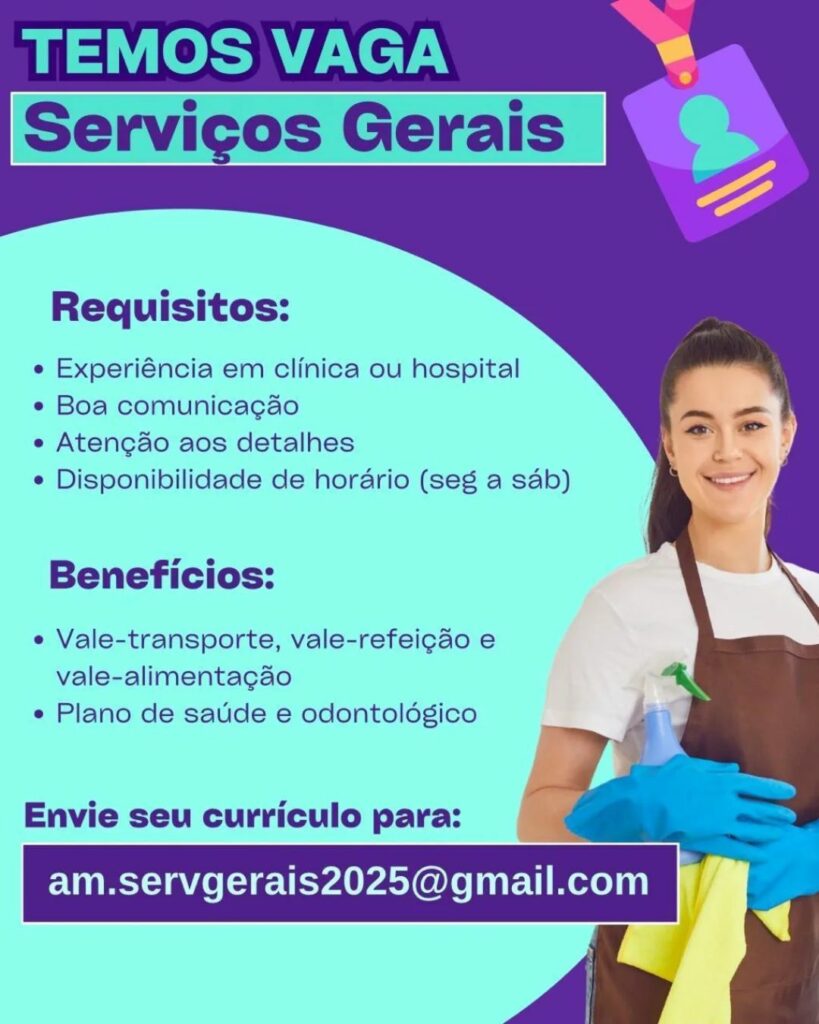 Empresa está selecionando Serviços Gerais; Envie seu currículo!