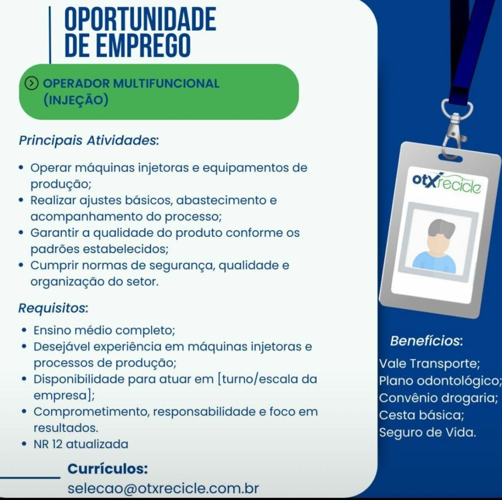 Empresa está selecionando Operador Multifuncional; Envie seu currículo!