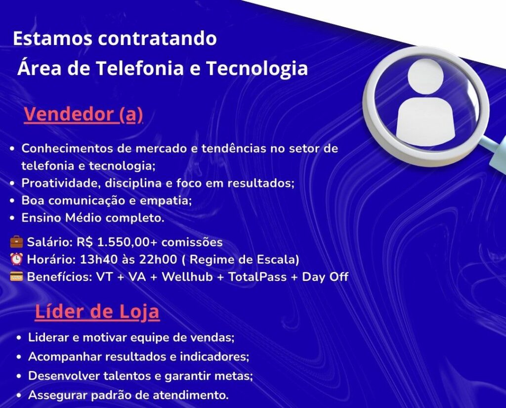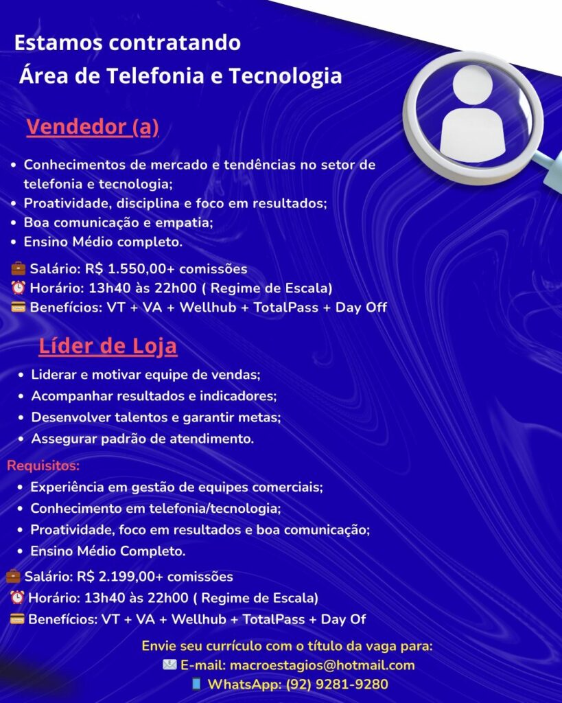 Empresa está selecionando Vendedor (a), Líder de loja; Envie seu currículo!