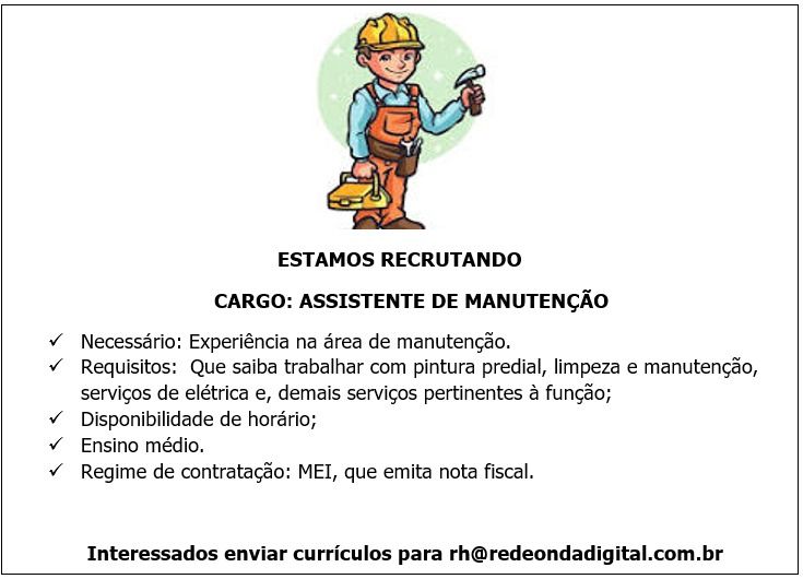 Seleção para vaga de Assistente de Manuntenção; Envie seu currículo!