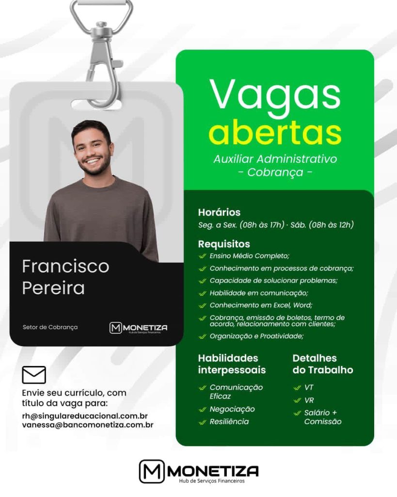 Empresa está selecionando Auxiliar administrativo cobrança; Envie seu currículo!