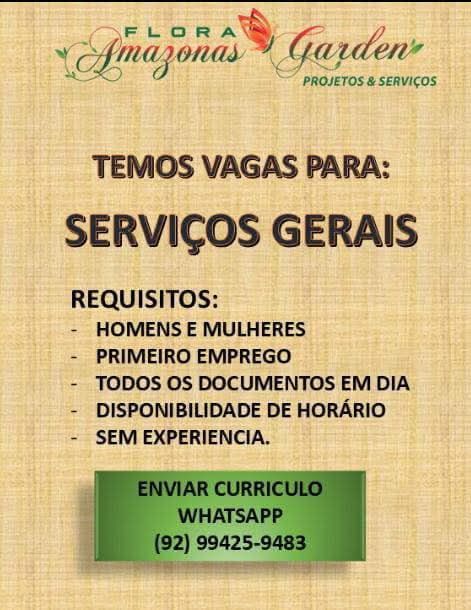 Com ou sem experiência! Flora Amazonas seleciona Serviços Gerais; Envie seu currículo!