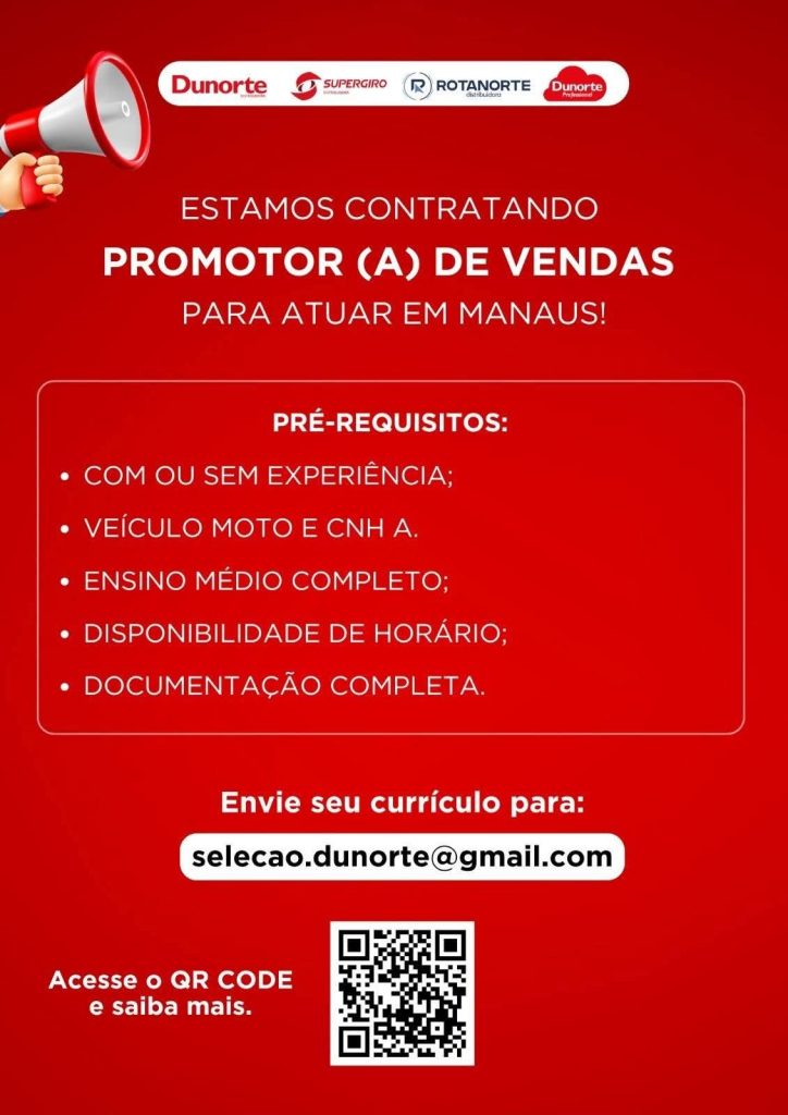 Dunorte está selecionando Promotor (a) de vendas; Envie seu currículo!