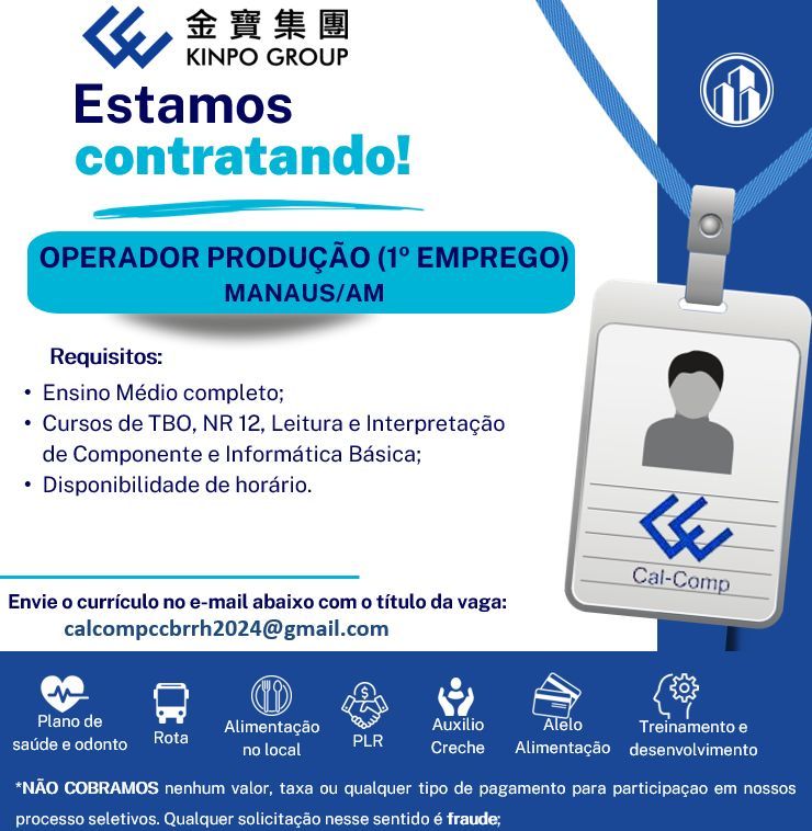 Empresa Call comp está selecionando Operador de produção 1°Emprego; Envie seu currículo!