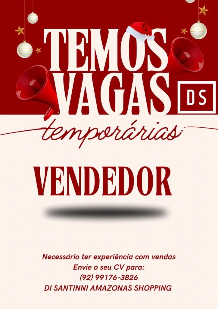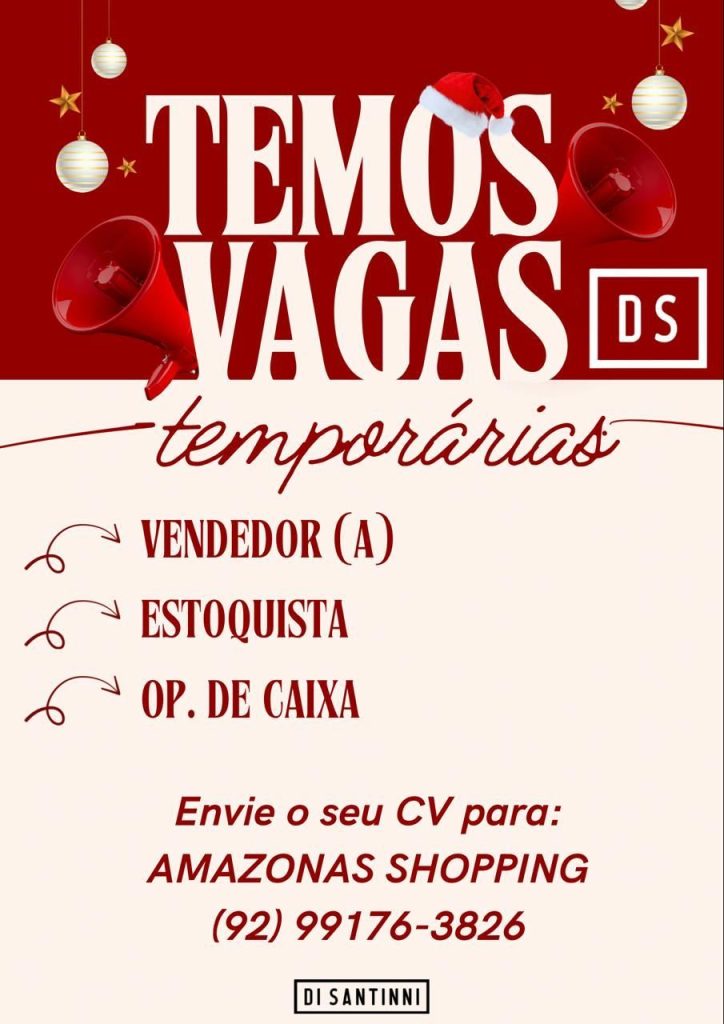 Di Santinni Amazonas Shopping está selecionando Vendedor (a), Estoquista, Operador de caixa; Envie seu currículo!